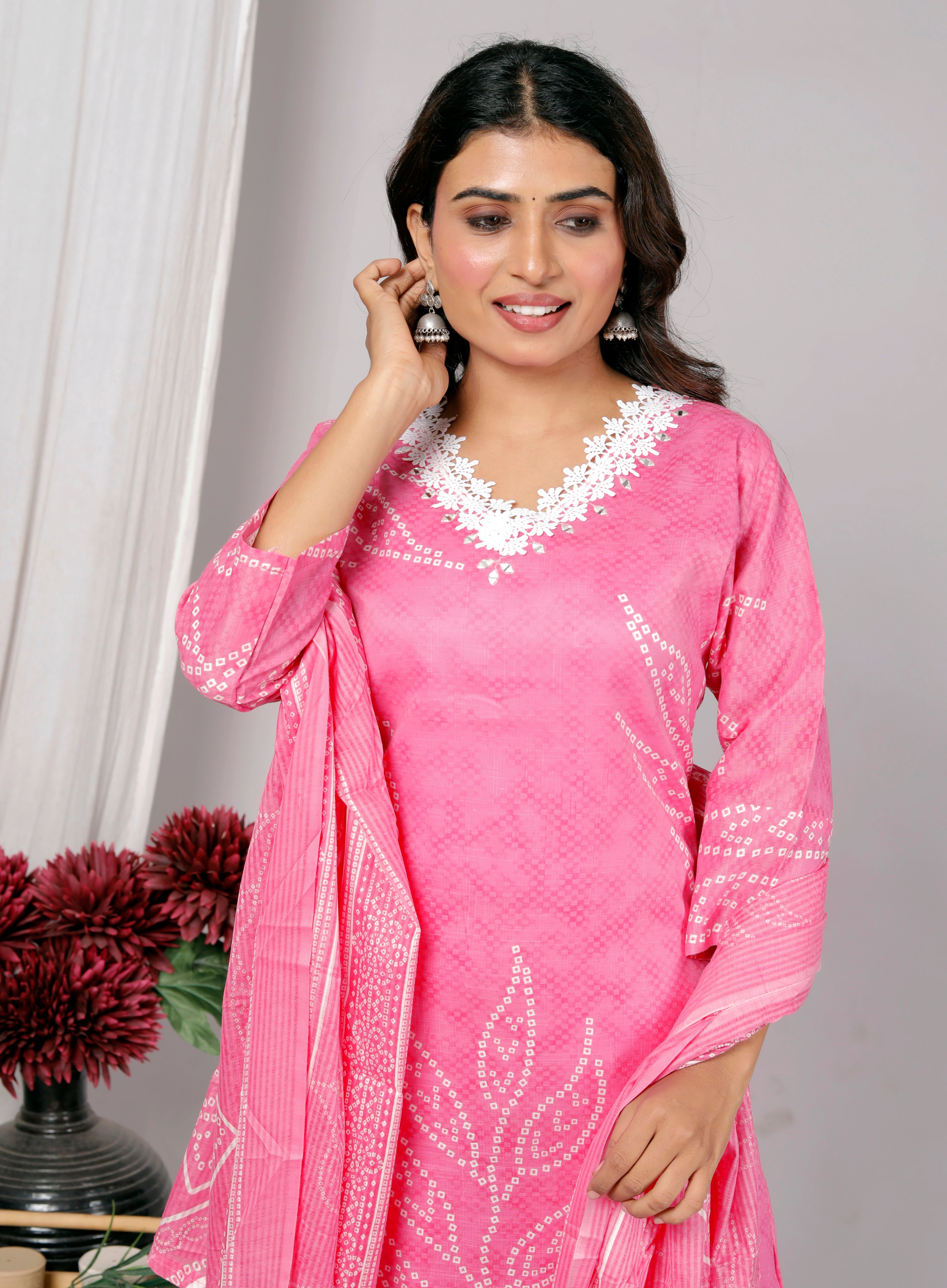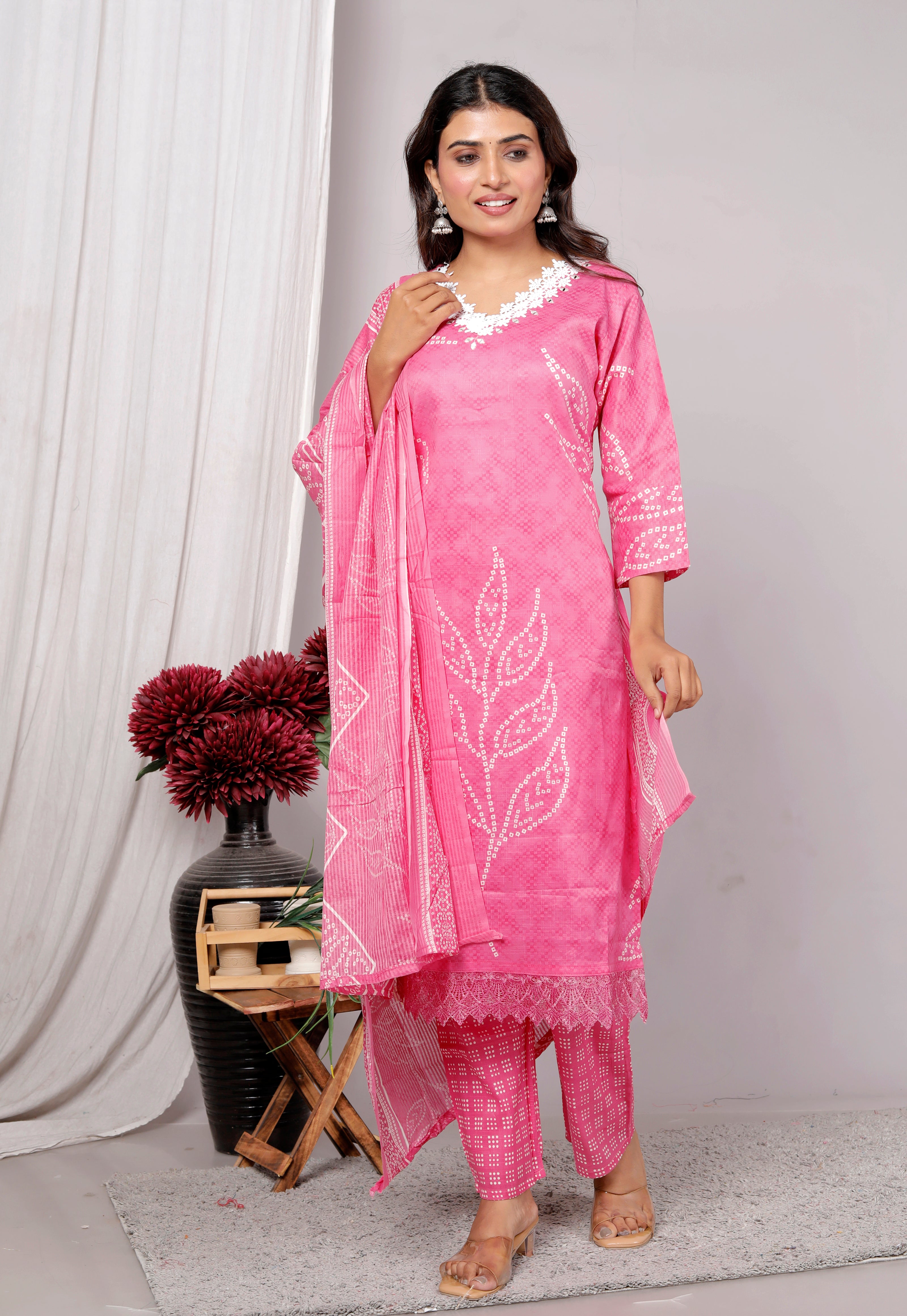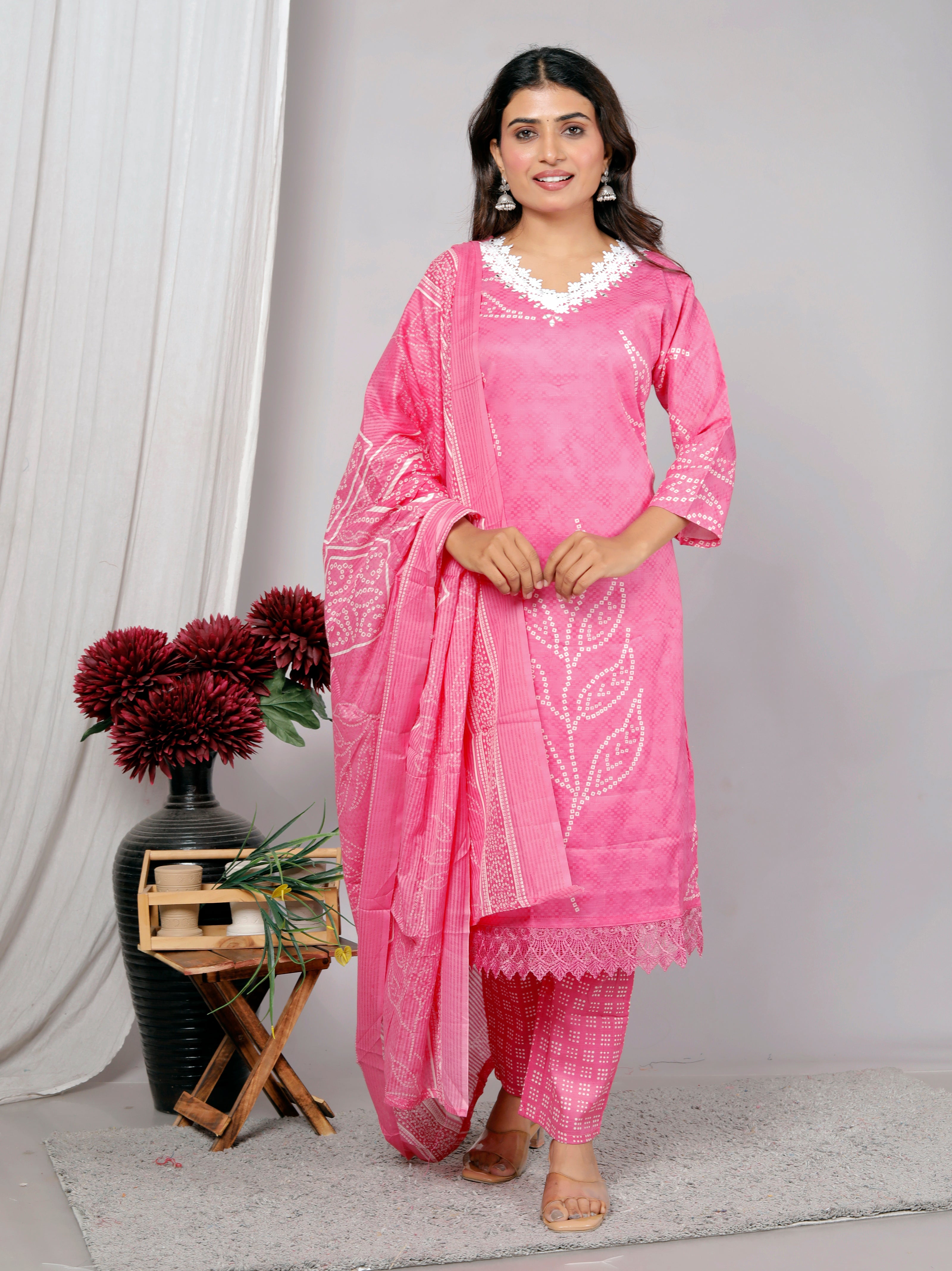 Indian Ethnic Salwar Suit Set, Cotton Kurta with Pant and Dupatta, Three Piece Traditional Set Cotton Suit Set