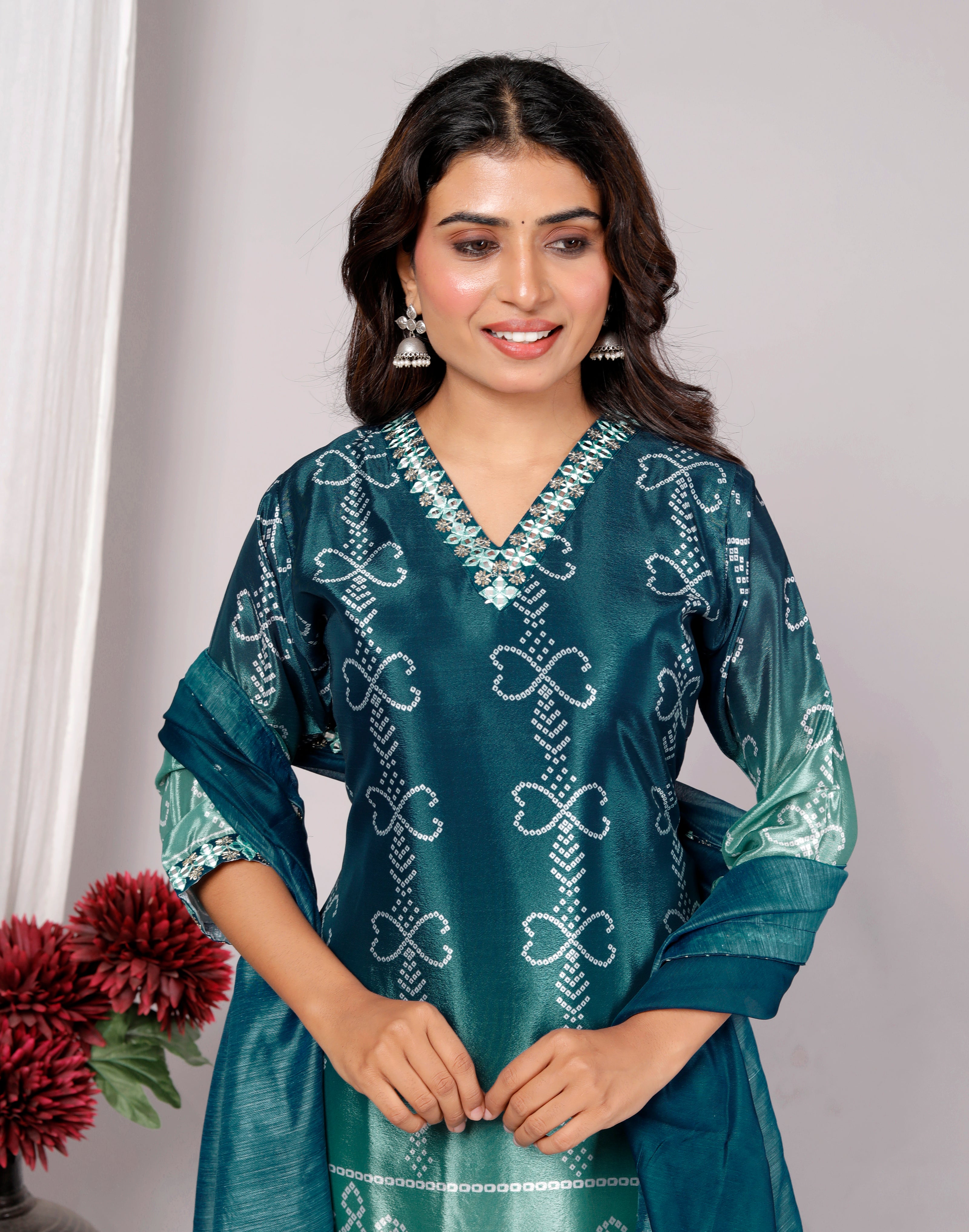 🌾 Product Name:** Classy Trendy Partywear Kurta Pant Set in soft chinon Fabric.